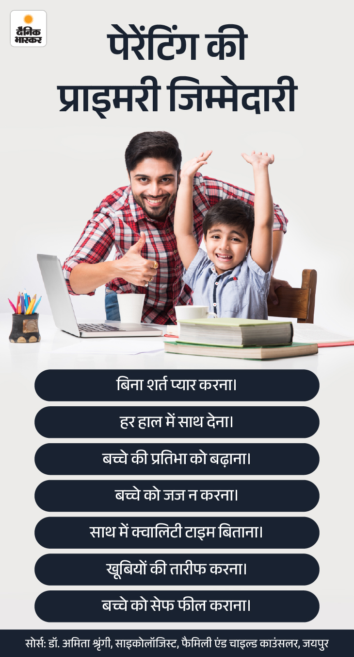 हर बच्चे की अपनी एक पहचान होती है और अपनी खास रुचियां होती हैं। पेरेंटिंग का मतलब उसे किसी तय ढांचे में ढालना नहीं, बल्कि उसके भीतर छिपी संभावनाओं को पहचानकर उन्हें निखरने का मौका देना है। इसी सोच के साथ आगे बढ़िए और पेरेंटिंग की कुछ प्राइमरी जिम्मेदारियों पर ध्यान दीजिए।