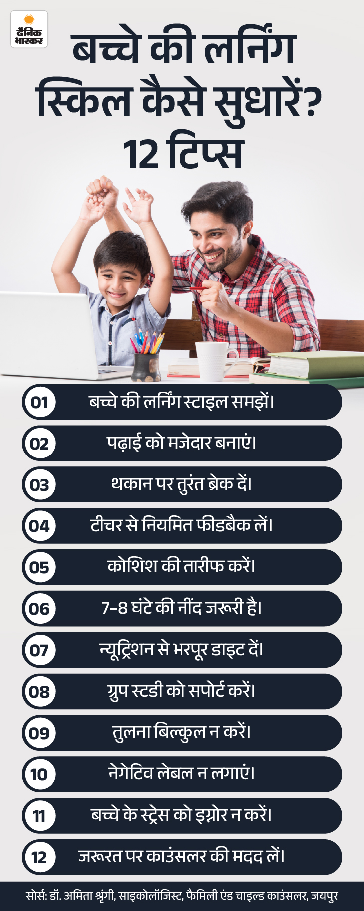 हार्वर्ड ग्रेजुएट स्कूल ऑफ एजुकेशन की एक रिसर्च के मुताबिक, पॉजिटिव रीइनफोर्समेंट से बच्चों की परफॉर्मेंस लगभग 25% तक बेहतर होती है। वहीं ज्यादा प्रेशर और स्ट्रेस उनके सीखने की प्रक्रिया को ब्लॉक कर देता है। इसलिए बच्चों के साथ धैर्य, समझ और प्रोत्साहन बेहद जरूरी है। इसके लिए कुछ खास बातों का ध्यान रखें।
