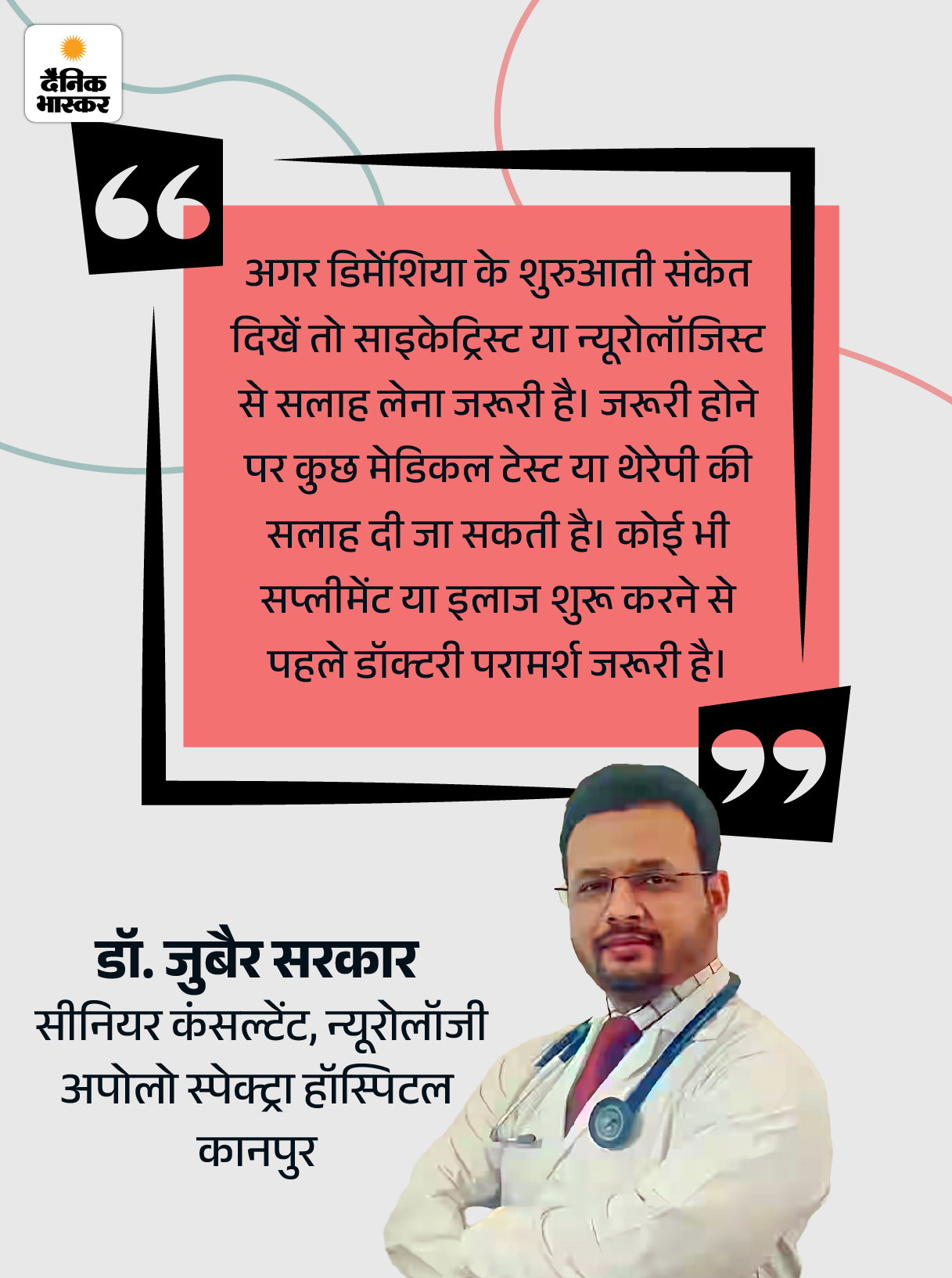 डिमेंशिया का मतलब सिर्फ याददाश्त खोना नहीं है, बल्कि यह पूरी जिंदगी को प्रभावित करने वाली स्थिति हो सकती है। अच्छी बात यह है कि समय रहते संकेतों को पहचानकर और लाइफस्टाइल में बदलाव करके जोखिम को काफी हद तक कम किया जा सकता है।